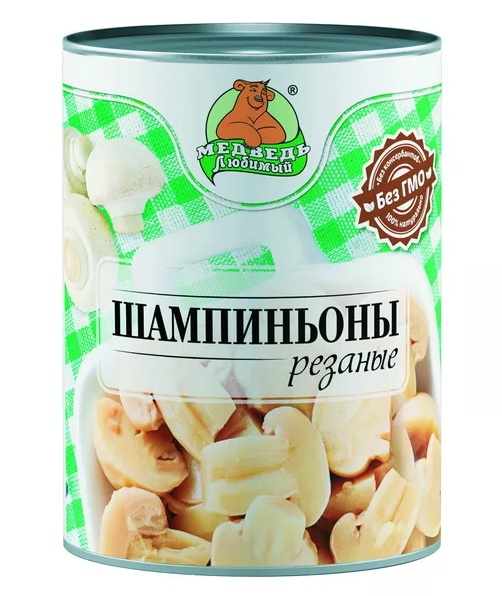Шампиньоны МЕДВЕДЬ ЛЮБИМЫЙ резаные 850мл ж/б