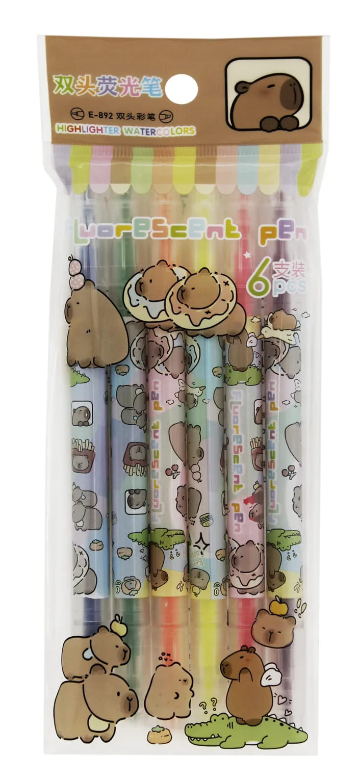 Фломастеры флюоресцентные 6шт Капибары двусторонние 892