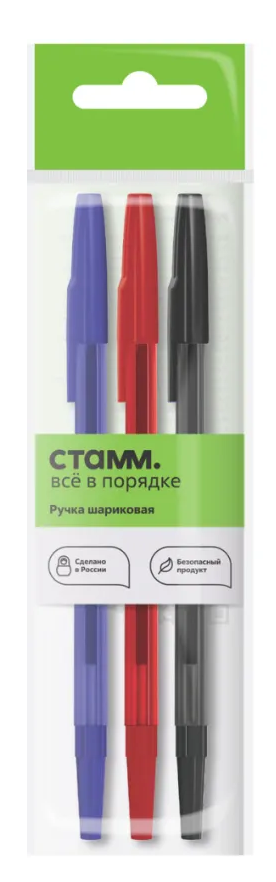 Ручки шариковые 3цв 0,7мм СТАММ 049 РШ-30418-3