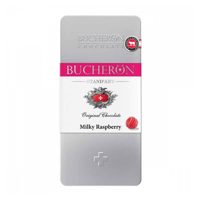 Шоколад BUCHERON молочный c кусочками малины 72% 100г ж/б