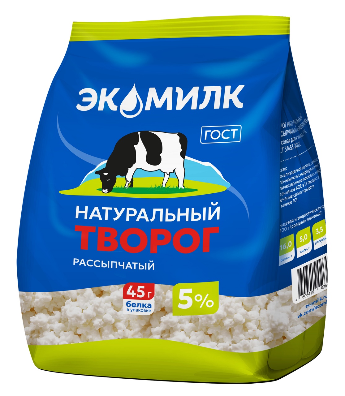 Творог натуральный ЭКОМИЛК рассыпчатый 5% 280г