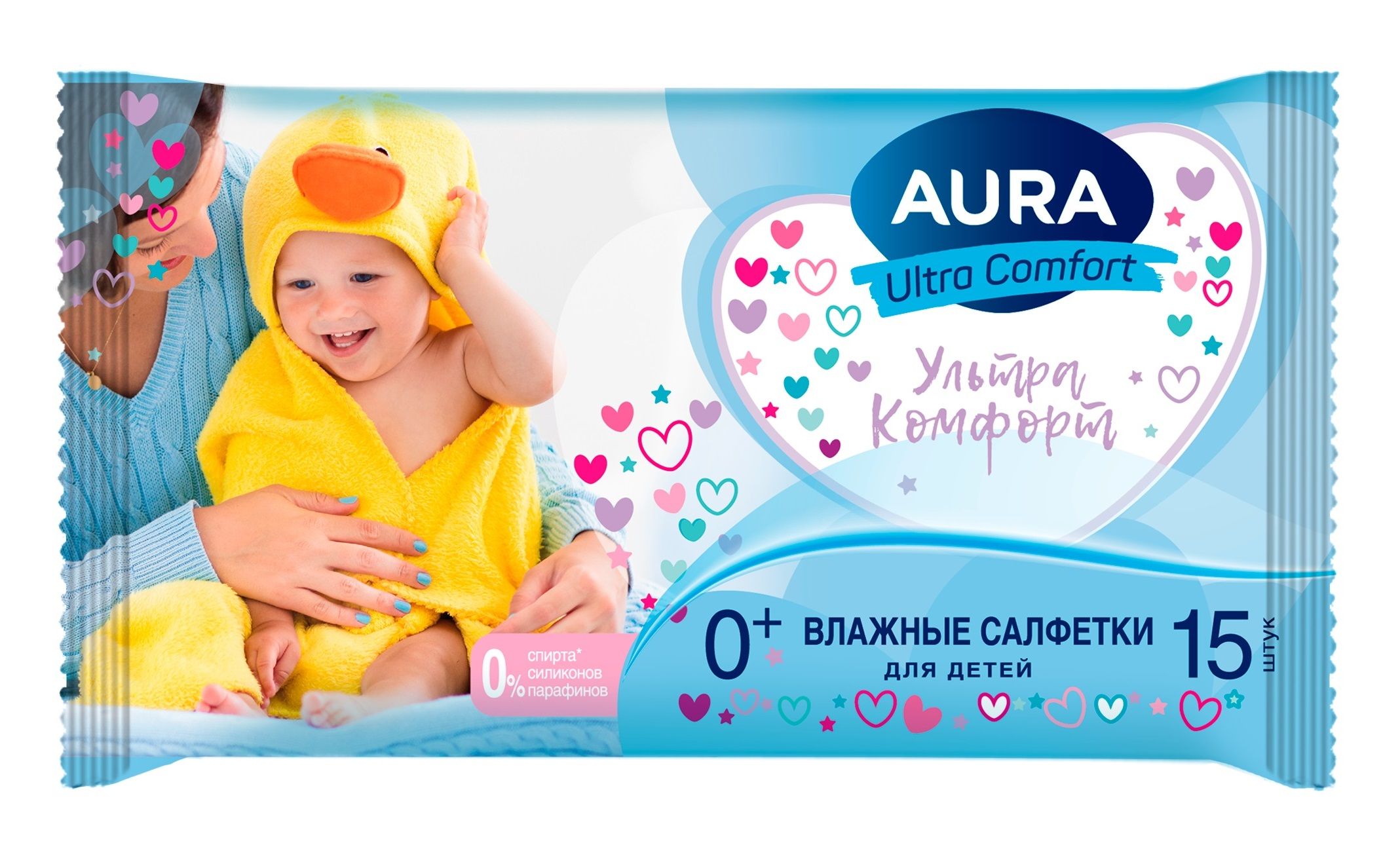 Салфетки влажные детские AURA ULTRA COMFORT 15шт