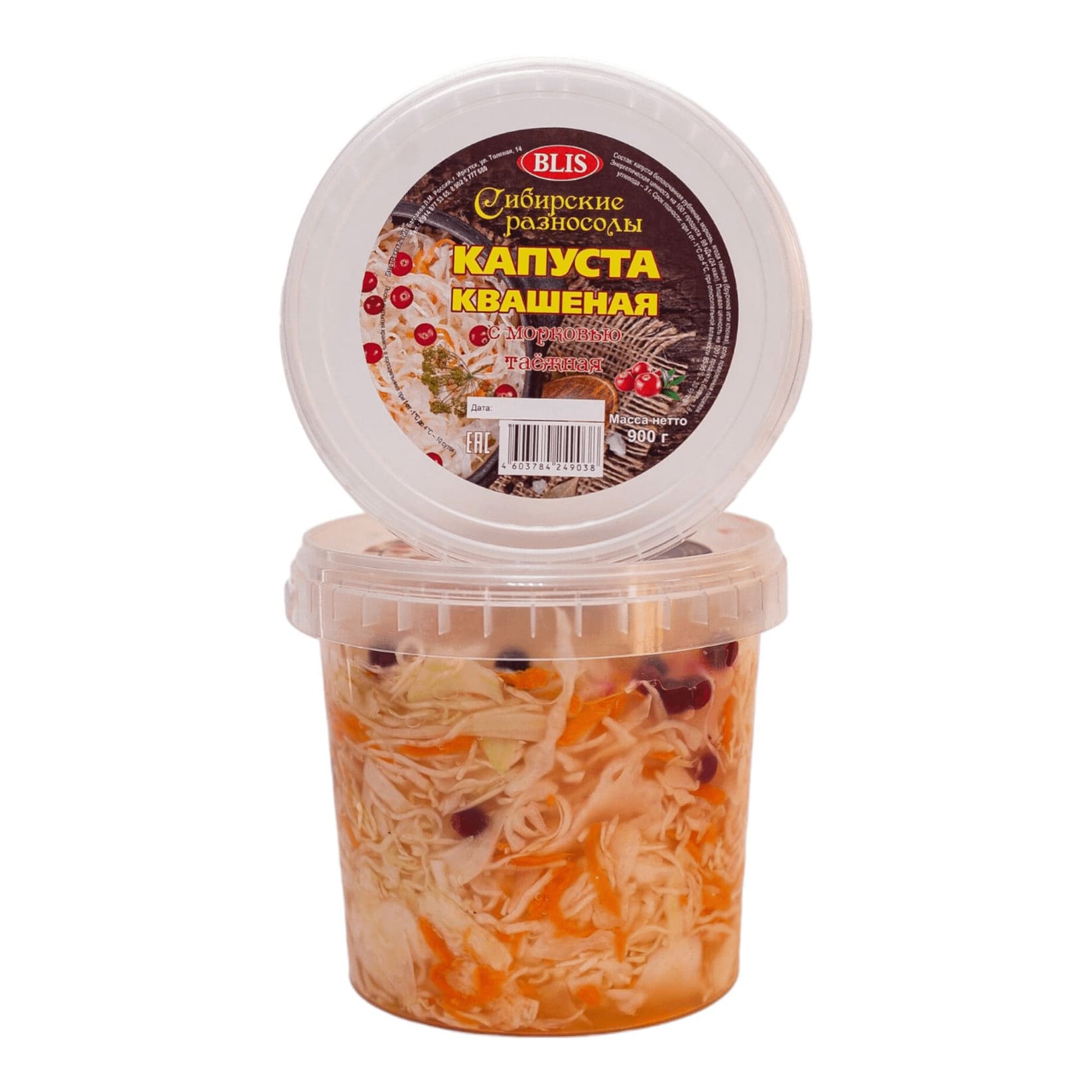 Капуста Сибирские разносолы квашеная с морковью таежная 900гр